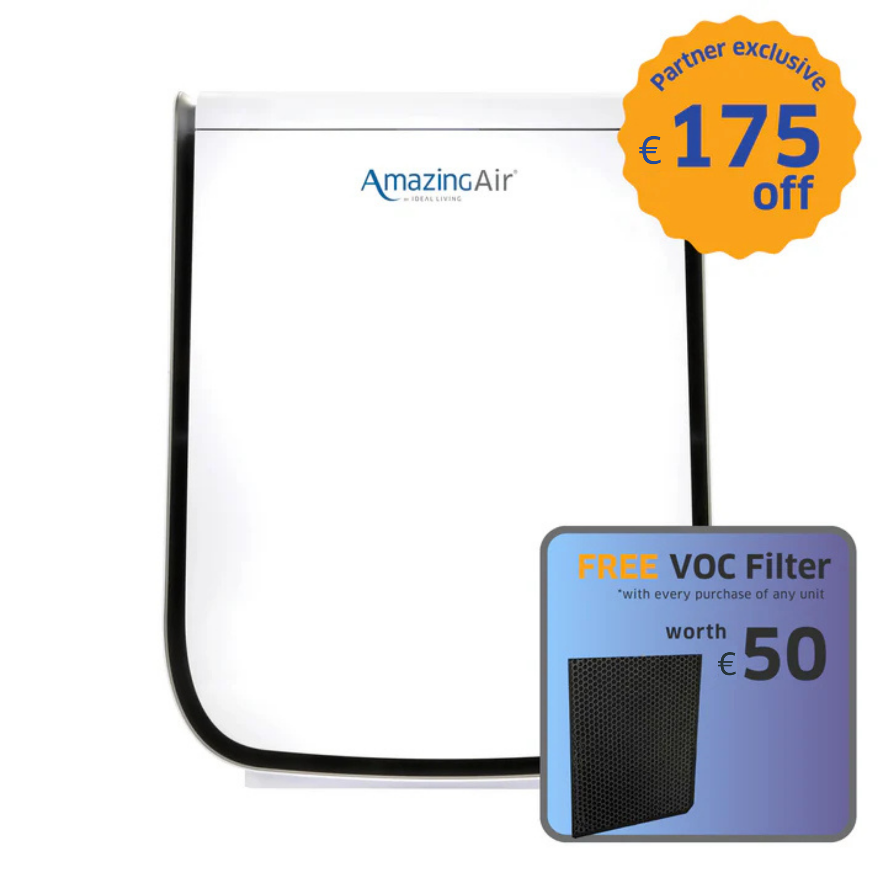Erhalten Sie 20 % Rabatt auf Filter und Zubehör, 100 € Rabatt auf den AmazingAir 2000 und 200 € Rabatt auf den AmazingAir 3500.